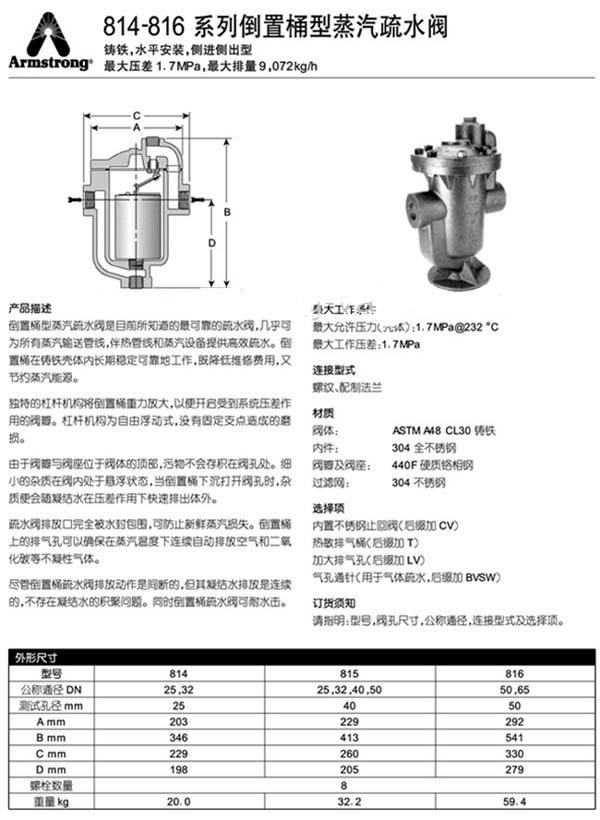 阿姆斯壯倒置桶型蒸汽疏水閥,可為蒸汽輸送管線,伴熱管線和蒸汽設備提供高效疏水。倒置桶在鑄鐵殼體內長期穩定可靠地工作,既降低維修費用,又節約蒸汽能源。