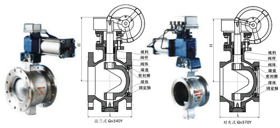 結(jié)構(gòu)特點 1、V型球閥采用蝶形彈簧或圓柱彈簧加載的可動閥座結(jié)構(gòu),閥座與V型球芯不產(chǎn)生卡阻或脫離等問題,密封可靠,使用命長; 2、V型切口球芯與閥座間有剪切作用,特別適用于含纖維、微小固體顆粒、料漿等介質(zhì); 3、球體與閥座密封根據(jù)工況不同,可分別采用軟密封、噴焊鎳基合金(硬度大于HRC60)、超音速噴涂鎢鈷合金(硬度大于HRC70)及特種硬化材料等多種先進工藝,適用各種苛刻工況,軟密封適用200℃以下工況,硬密封碳鋼不超過425℃,不銹鋼不超過600℃。 4、蝸輪傳動具有精確調(diào)節(jié)和可靠定位功能,流量特性近似等百分比,可調(diào)范圍大,調(diào)節(jié)精度高; 5、全開時流通能力大,壓力損失小,介質(zhì)不會沉積在閥體中腔。