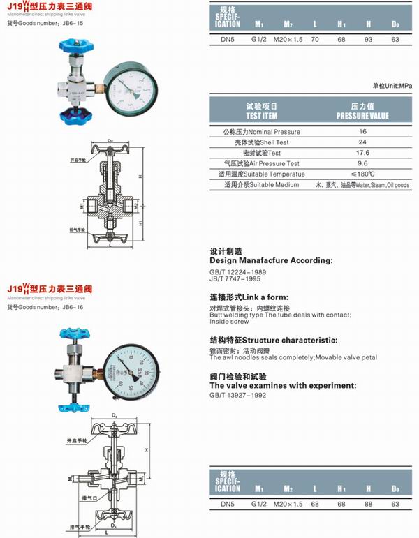 J19H壓力表針型閥