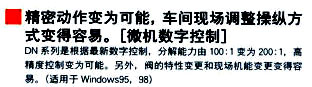用于開關控制。能簡單的改變開關速度,除防止水錘外,在吸收式冷凍機開始運轉時,使用暖回路的開關系統和浮動控制器,可以進行壓力控制,閥門打開角度是0-90°。 |