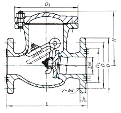 H44H型旋啟式止回閥外型尺寸和連接尺寸 Outling and connect measurement